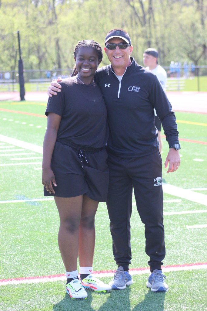 After over 20 years and more than 5,000 participants from all over the northeast, the Alercio OLine Clinic experienced a first. Fami Olorunnisola, a sophomore from Bordentown high school in NJ, became the first girl to attend a clinic. She was joined and supported by a dozen of her teammates working through all the drills under the watchful eyes of their coaching staff.
