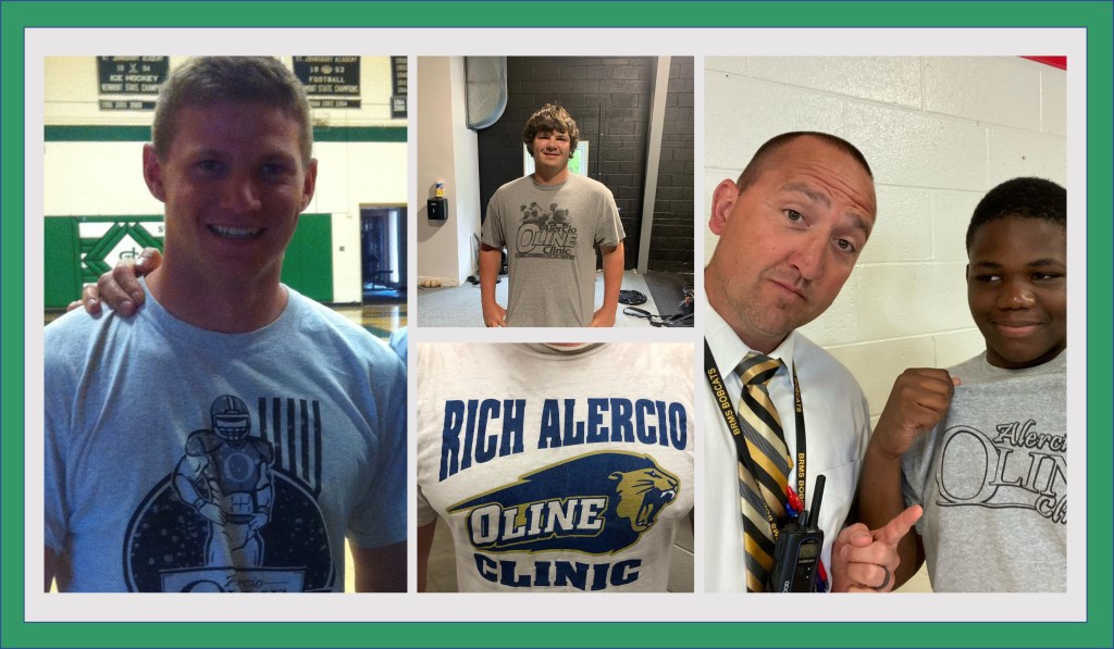 The t-shirt design has changed multiple times over the years but the joy of receiving a photo of a player proudly wearing an Alercio OLine Clinic shirt never changes. Several years ago, while I was speaking at a football clinic, a coach in the audience pulled up his polo shirt to reveal an Alercio OLine Clinic t-shirt underneath. When I think of the thousands of shirts we have given out over more than 20 years, I hope they bring a sense of joy and pride every time they are worn.