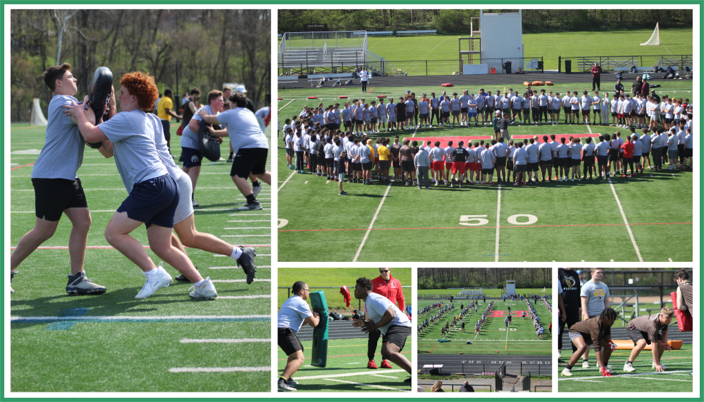 This past Sunday nearly 200 young men gathered at the Hun School of Princeton, under sunny skies to learn and train their OLine Skills at the 22nd Alercio OLine Clinic. By all accounts, it could not have been a better day. These aspiring student-athletes were attentive, focused, hardworking, and enthusiastic. For four hours they learned new skills in a large group and then trained these tactics in smaller groups allowing their coaches to make any necessary changes in their steps, body positions, visual targets, or strike points.