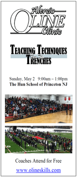 Coach Rich Alercio is available to discuss coaching philosophy, X’s & O’s, or teach his O-Line “techniques in the trenches.” Contact Coach at richalercio@gmail.com and share http://www.olineskills.com with your colleagues and friends. Thanks for supporting this blog and joining our conversations, and as always, thanks for your time!